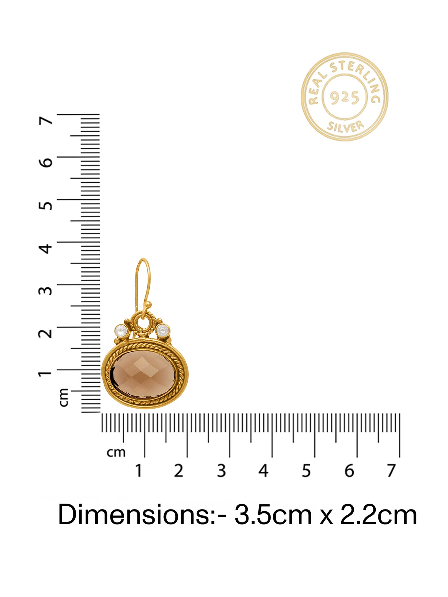 Elevate your look with the captivating Nitya 925 Silver Smoky Quartz Dangler Earrings. • Smoky Quartz Oval Gemstone • Gold Plated 925 Silver • Protected by anti-tarnish coating for lasting shine These stunning earrings are the perfect accessory to add a touch of elegance and sophistication to any outfit. The rich, smoky quartz stones are set in gleaming gold-plated 925 silver, creating a luxurious and eye-catching look. Plus, the anti-tarnish coating ensures these earrings will maintain their beautiful shine for years to come