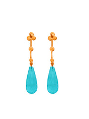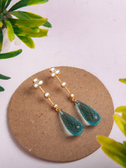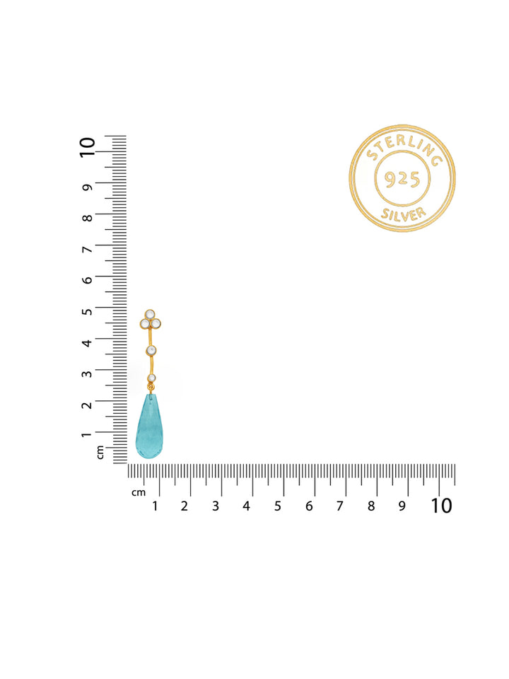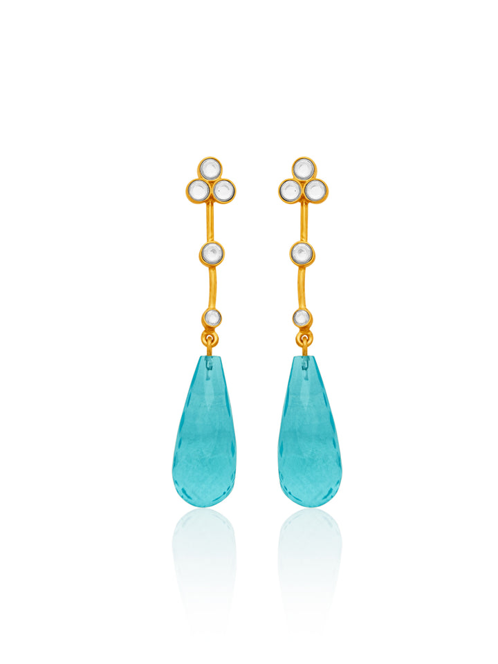 Introducing Aqua Briolette Drop Kundan Delights, the epitome of elegance and sophistication. Crafted with the finest materials, including 925 Sterling Silver and 22K Gold Plating, these exquisite earrings are a true work of art. Adorned with a big Aquamarine (H) Faceted Briolette Drop at the bottom, and embellished with round Kundan, these earrings are a sight to behold.