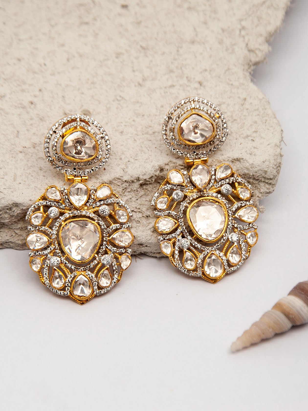 Swarna Utsav Moissanite Earrings: 925 Sterling Silver Gold Plated