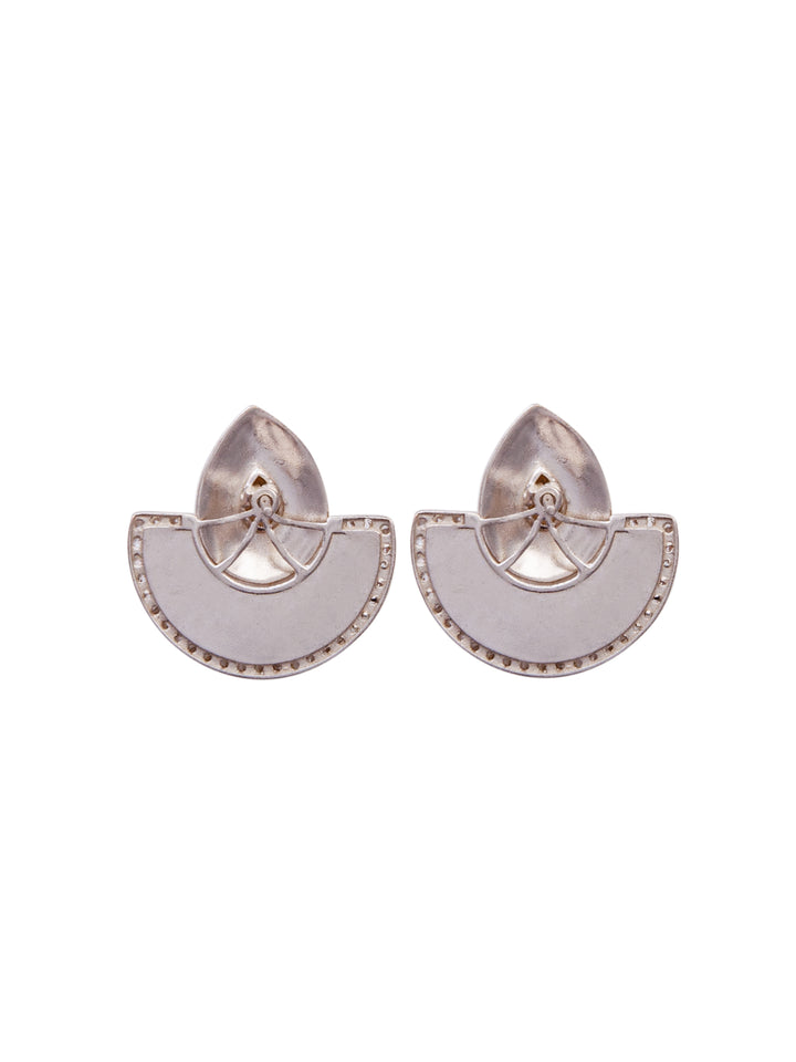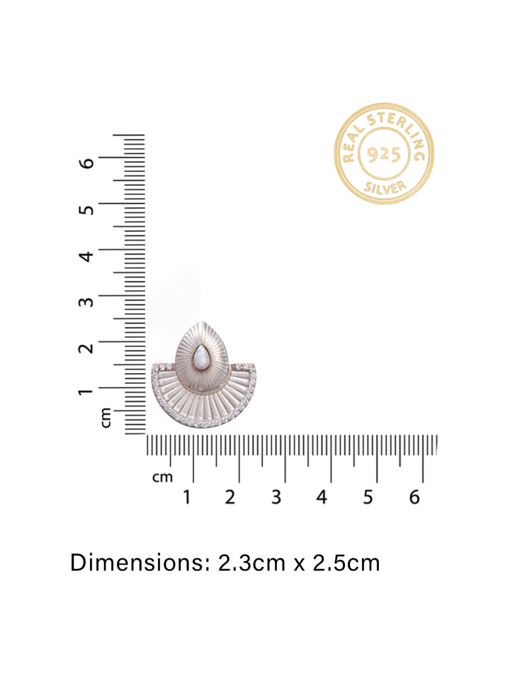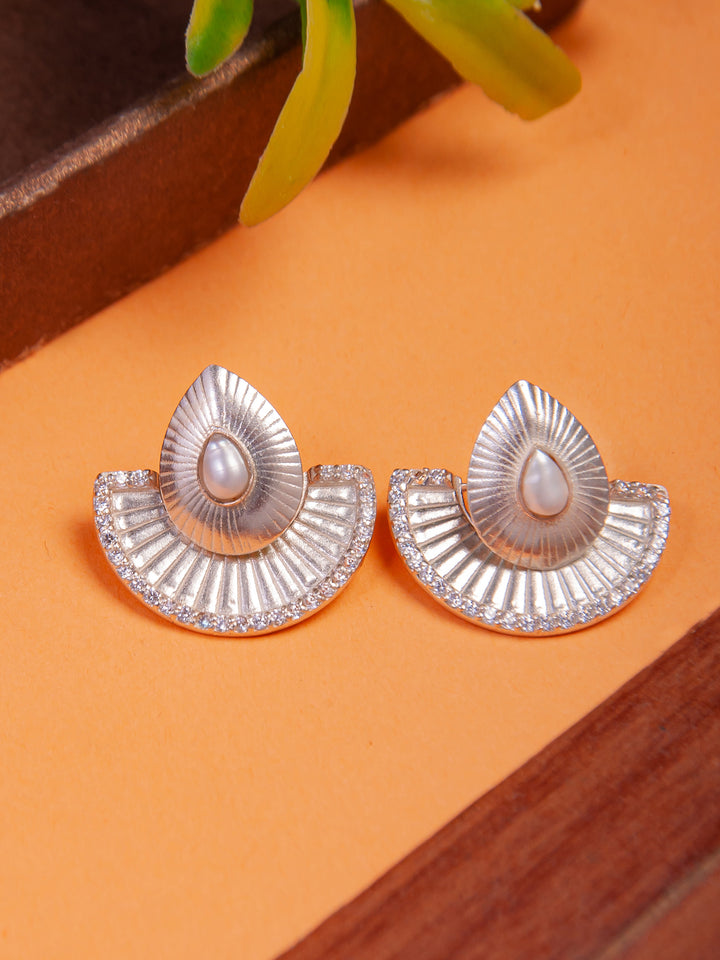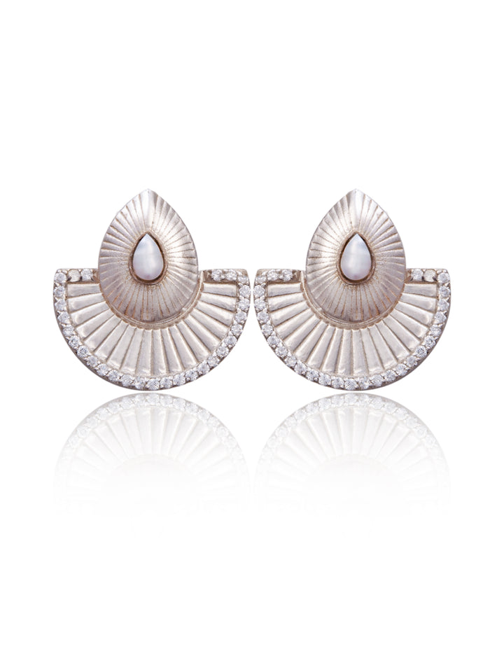 Introducing the Pearl Dazzle Duo - the perfect earring for every occasion! Made with 925 Sterling Silver, this unique earring features a stunning Pear Shaped Silver Handcarved motif with a Pear shaped Pearl Gemstone and a U shaped Silver Handcarved motif adorned with CZ diamonds all around.