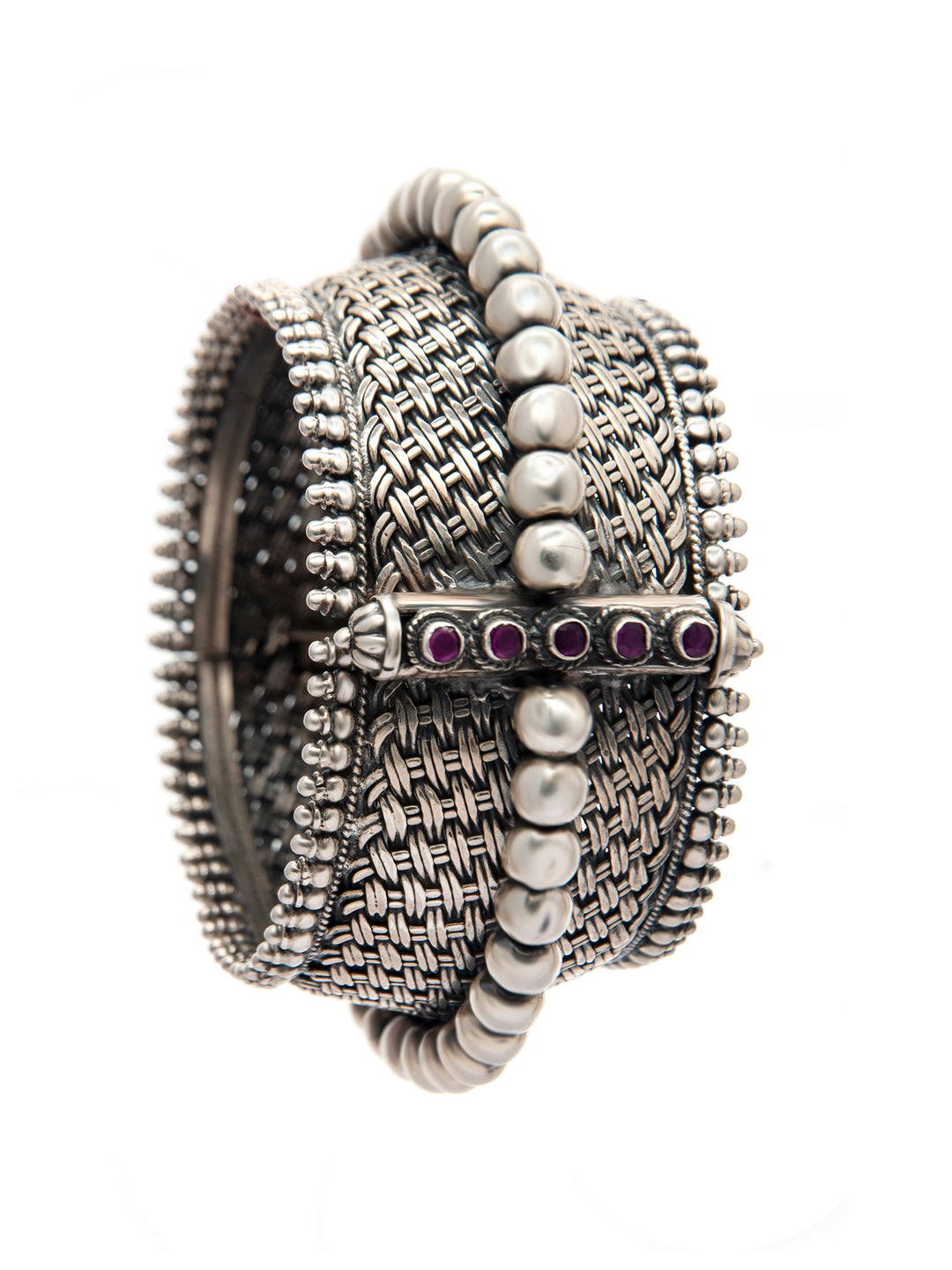 Rawa Radiance: 925 Silver Statement Bangle with Fine Rawa Detailing