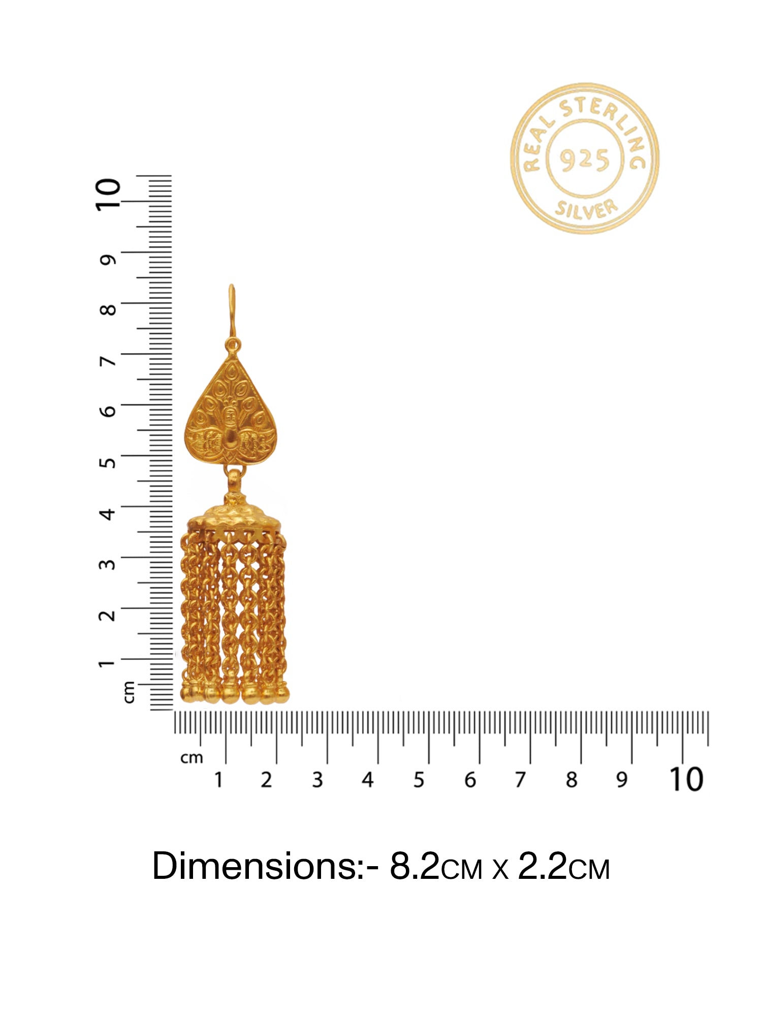 Celebrate tradition and style with the Rajwada Festive Gold Plated 925 Silver Peacock Motif Earrings with Long Ghungroos.